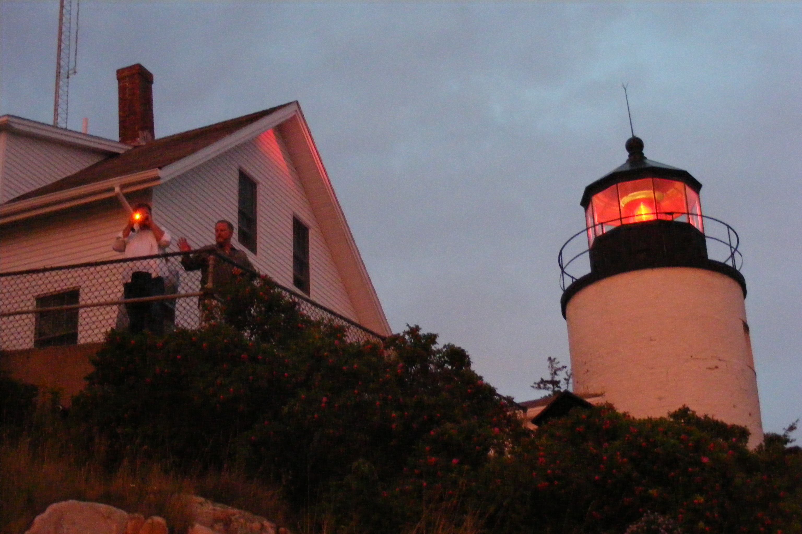 Giving credit where it’s due: FD Tiffany took the picture now in my Blog header with my FugiFilm FinePix S5700 camera in Maine last summer (that was pre-Canon Rebel XT). She ungracefully scaled a fence and traversed down to the rocky shoreline at Bass Harbor Head Lighthouse (scoll down on the web page – those are FD’s perch rocks in the picture) to take this sunset photo. The mosquitoes practically carried her out to sea. Bass Harbor Head Lighthouse is the only lighthouse on Mount Desert Island (Acadia National Park)