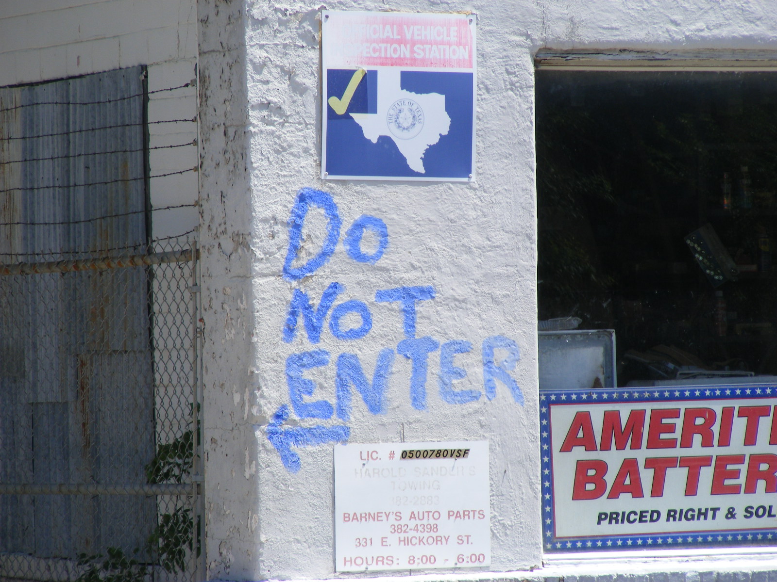Also check out the convict painted on the back window. E-gads.I have to be really hungry to buy sandwiches at a gas station - even more so from the Bimbo guyWe started to change our name but then the truck broke downBlack tape wizardry, with a little bit of dsylexiaThis is just a handmade sign that makes you go "whut?"