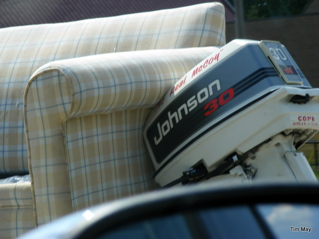 The winner of the “Creative and Multiple Use of Trailering” awards goes to……….the Arkansas lady pulling a fishin’ boat with a Lincoln, with trailer lights connected through the trunk, wearing a soft microsuede soothing and relaxing U-shaped neck pillow (as Deb is my witness she was) while driving, carrying a sofa braced by the outboard boat motor and not getting a bit of grease on the upholstery….