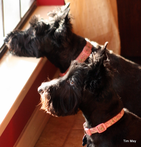 Mackie and Zoey, the royal Scots of the house, were caught peering out the dining room window while soaking up a bit of early morning sunlight. I’m thinking they really do kind of like each other but are too proud to show it.