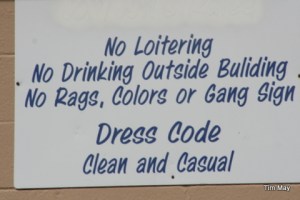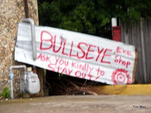 1. Having enjoyed your sign photography for some time now, I’ve come to this conclusion! Reading signs kinda makes a person “wanna do” whatever it is they say ya “ought not be doin”. Must be that I love a challenge! A fun date = Tim and Deb, camera set on 15-second timer, picture snaps capturing the sign and two of you doin’ what the sign warned you against! Just a thought ……… :o)