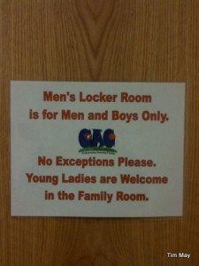 Men's locker room for Men & Boys only, check. Young ladies to the Family Room - not sure why but, check. Hmmm, where are the "old ladies" suppose to go?