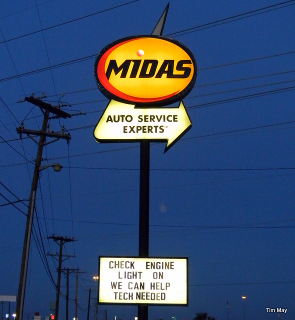 Don’t know about you guys, but I’m thinking a tech needs to be on staff before I take my car in for their help with a check engine light (maybe we ought to check the engine light of the guy in charge of this sign)