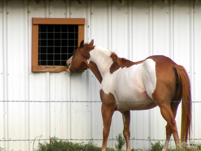 Nothing like a horse with an attitude giving a chew on the barn window