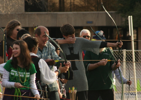 Five hours were spent to watching kids learn Irish dancing, begging dad for swords bigger than they were at vendors throughout the Festival, and old and young alike getting lessons on old Irish hunting methods…the bow and arrow. The Festival is dog friendly so there were canines everywhere.