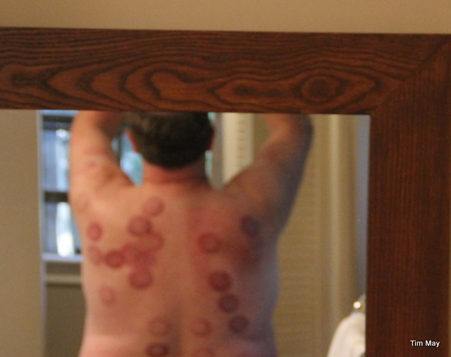 And as for the ‘cupping’…well it’s been a long, long, long time since the results of some”thing” sucking on my skin has given me temporary tattoos.