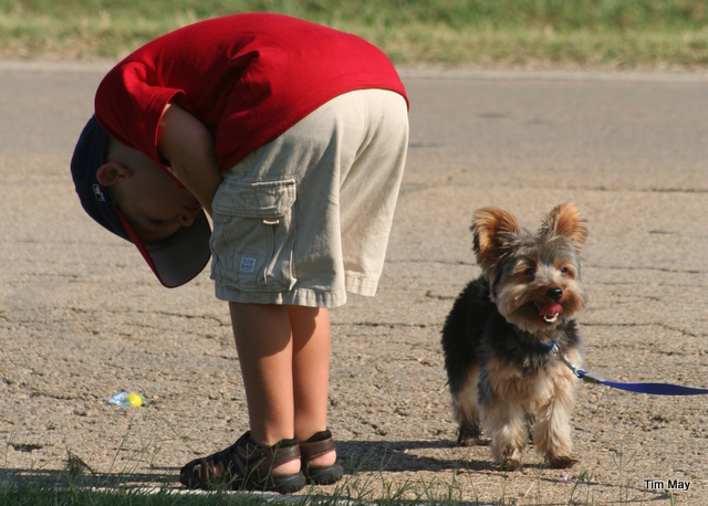 Tiny Boy with his tiny dog...waiting on the parade to come by