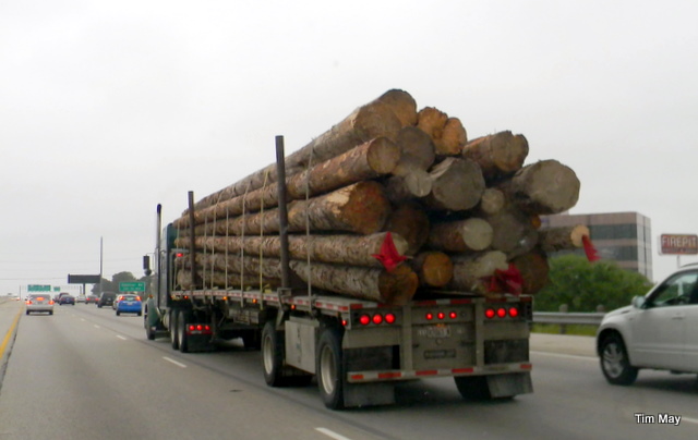It’s not often that I see a truck load of pine timber rolling through the urban areas of Dallas-Fort Worth. My guess is he’s either lost or just ‘logging’ some extra miles….