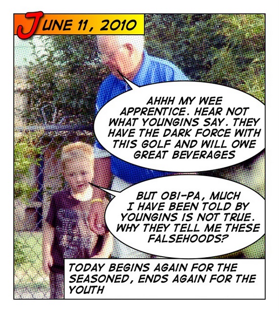 Friday’s golf outing amongst the family should be fun, interesting, and full of…well…lets just saw if history is any indication of what’s in store for the course, I will need to be a designated golf cart driver for the “young’uns” and their run to the liquor store (losers by the beer) will be sobering. Dad and his 3 sons (the old timers 0r “old farts” if you’d rather) versus 4 of his 5 grandkids (the “Young’uns). It is safe to say we talk (and Photoshop) better than we play the game.