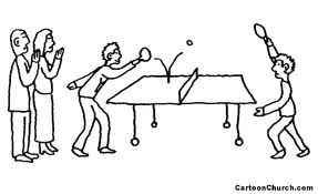 We didn’t have an ordinary table. It was one of great durability. To prove it, in a true brotherly effort to out-do each other, one of us (don’t remember who anymore), decided to lift weights downstairs. We did that quite often actually, but on this particular day a new family clean-and-jerk record was attempted.Well, let me leave it at this: the wherewithal of our ping-pong table was notable as the free weight was lifted from the floor, jerked over the head, and then kept going, crashing down on the backside of the lift in one fluid swoop.