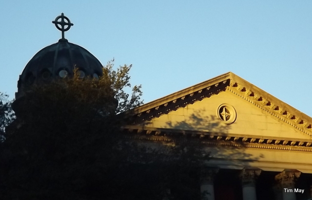 The early morning peeks over downtown Fort Worth on the historic First Christian Church (this is a way cool building...been in it, got the personal tour one afternoon just by dropping in on the staff and asking about the building); http://www.fccftw.org/
