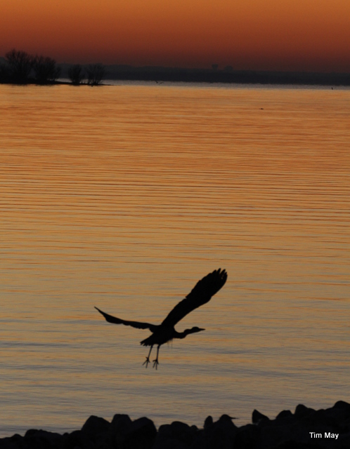 This Great Blue Heron and I share the morning light several times a week. But it was this morning he showed unusual tolerance of my walkabout to put him between me and the sunrise for this picture...that is until he had enough and took flight.