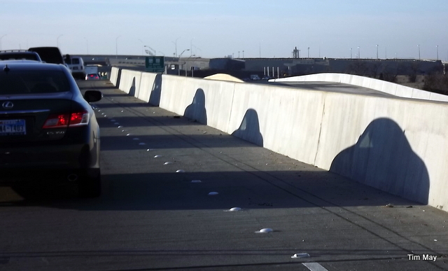 I pretty sure I got behind the Jetson's during this morning's workday commute, or so their vehicle shadows against the barrier wall might seem to indicate. Except...these guys with their midsize sedans weren't floating and or making soprano-pitched beep-beep sounds.