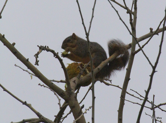 Another angle at the Callery PearNature's toothpick, the HoneylocustYou know it's been a tough winter when the squirrels have to eat the hedgeapple fruit....The "corked" or "winged" elm...love this treePecking for breakfast...out amongst the woods. These guys are getting to know me....