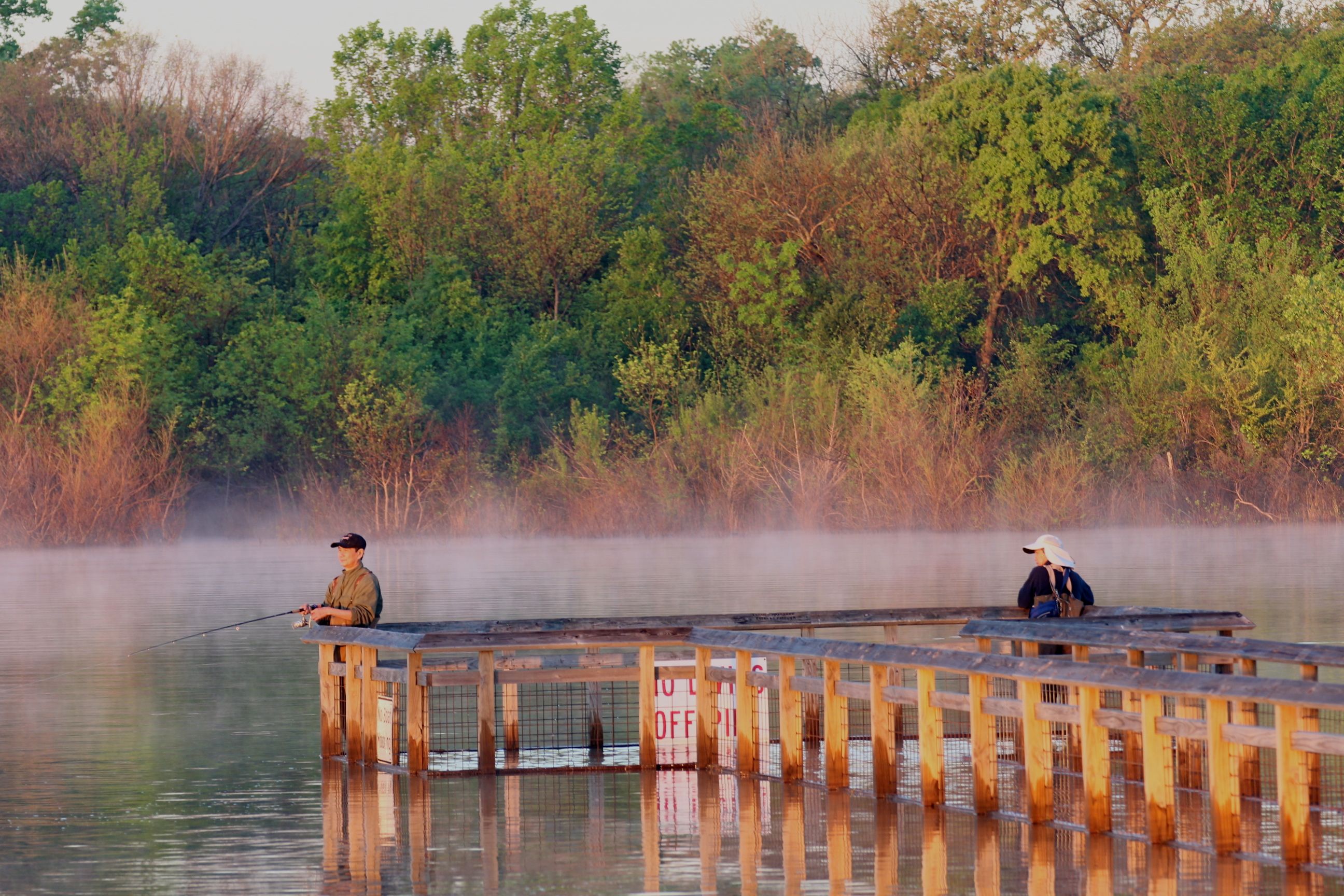 Wonder what the morning conversation was..."whadda mean you didn't bring the donuts?"Fishing for fish so they can go fishing (why do I like to watch these guys do this...and end up saying the same thing over and over again?)With all the rain of late, the fishing pier has also become the wading pier.The hope and wishes of youth is bound to bring a smile to your face, right?Oh the lengths fisherman will go to just to catch a fish. Poles in a bucket on a submerged picnic table, pole on the bank, and of course in order to let the little boy in each of us (men) out, ya gotta have one in hand so you can wade out in waist deep water for the castBut they always get an enviable great show first thing in the morning....