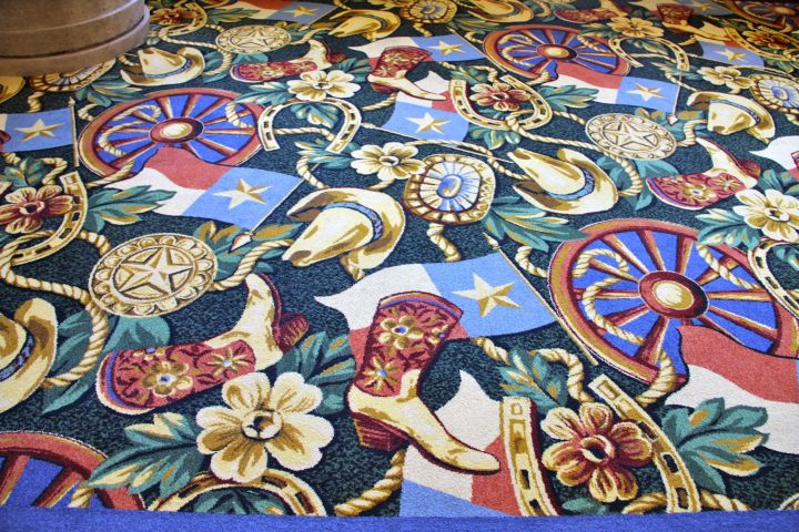 That is the most obnoxious carpet. Ever. The lime green jacket purple shirt combination? Bliss.