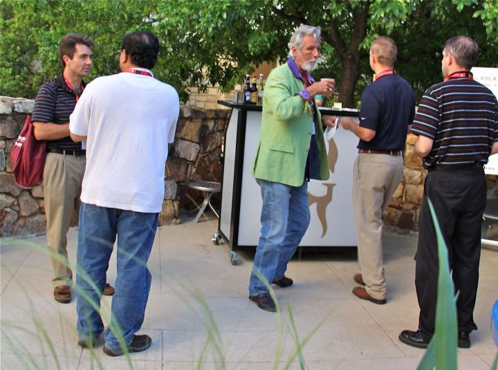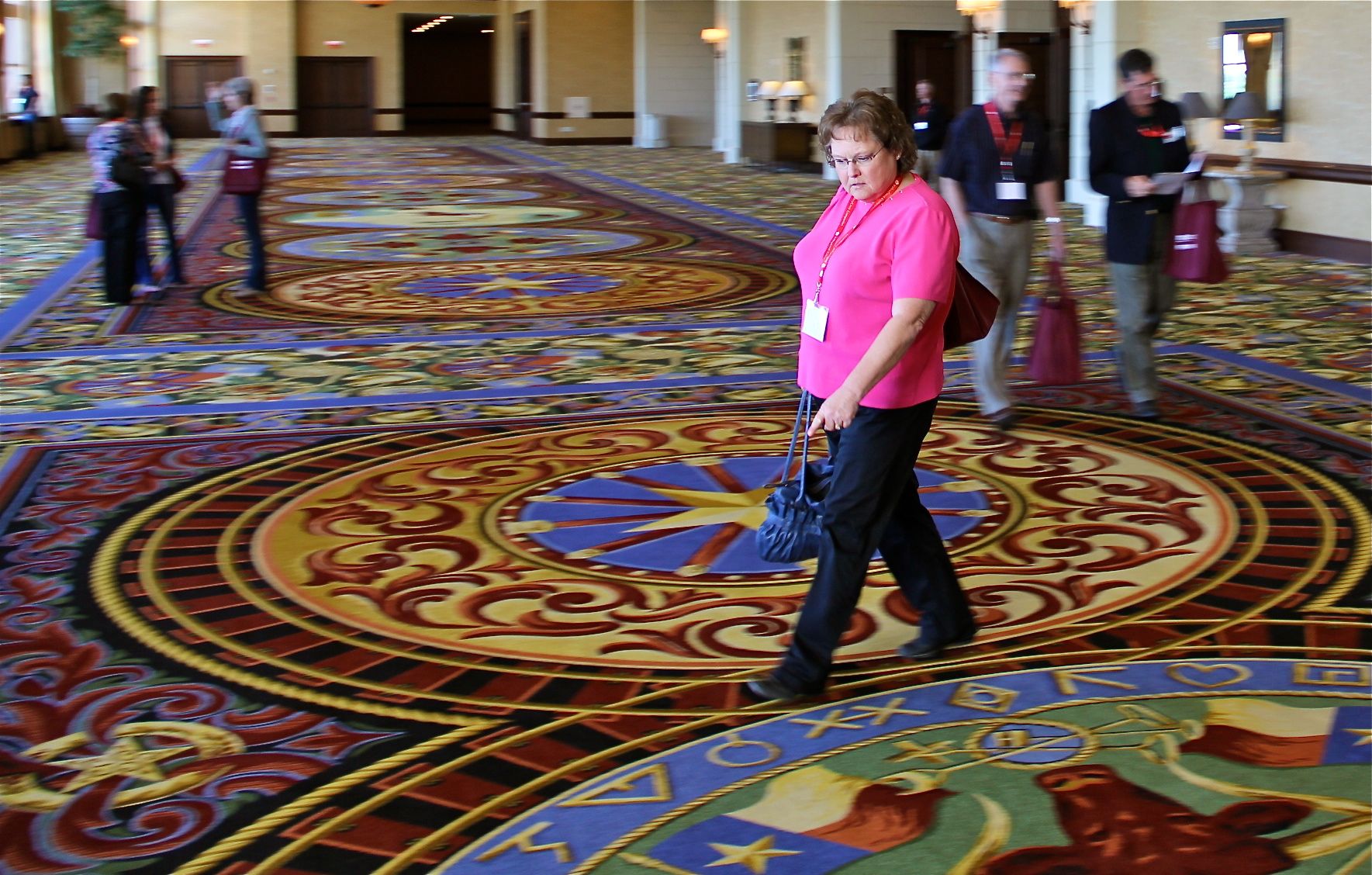 Leave it to a landscape architect to have such a handsome lime sherbet jacket (the patterned purple shirt up close was even better)...sorry for the lack of focus gang, but I bet you can get the gist.Meet my first boss out of college, Bill...he's still wonders why he ever hired meMy dear friend and former champion rollerskater Traci (we grew up professionally together don't cha know) enjoying the figure 8 railroad tracks found in the convention center carpetWho designs this? When does the inspiration hit? What kind of music do they listen to? Are they Facebook likable?What is it about convention center carpets that fascinate me? (see above pic questions)
