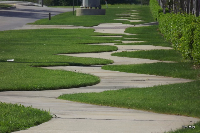 The Cherry Salvia is in bloom in CoppellThe 'Hot Lips' Saliva is in bloom down the street at my subdivision entry medianWhat a minute...this isn't SalviaNeither is this curly Q, serpentine, wiggly sidewalk, but you can get just as drunk walking this pathway as you can enjoying the brilliance of Salvia in bloom down the street....
