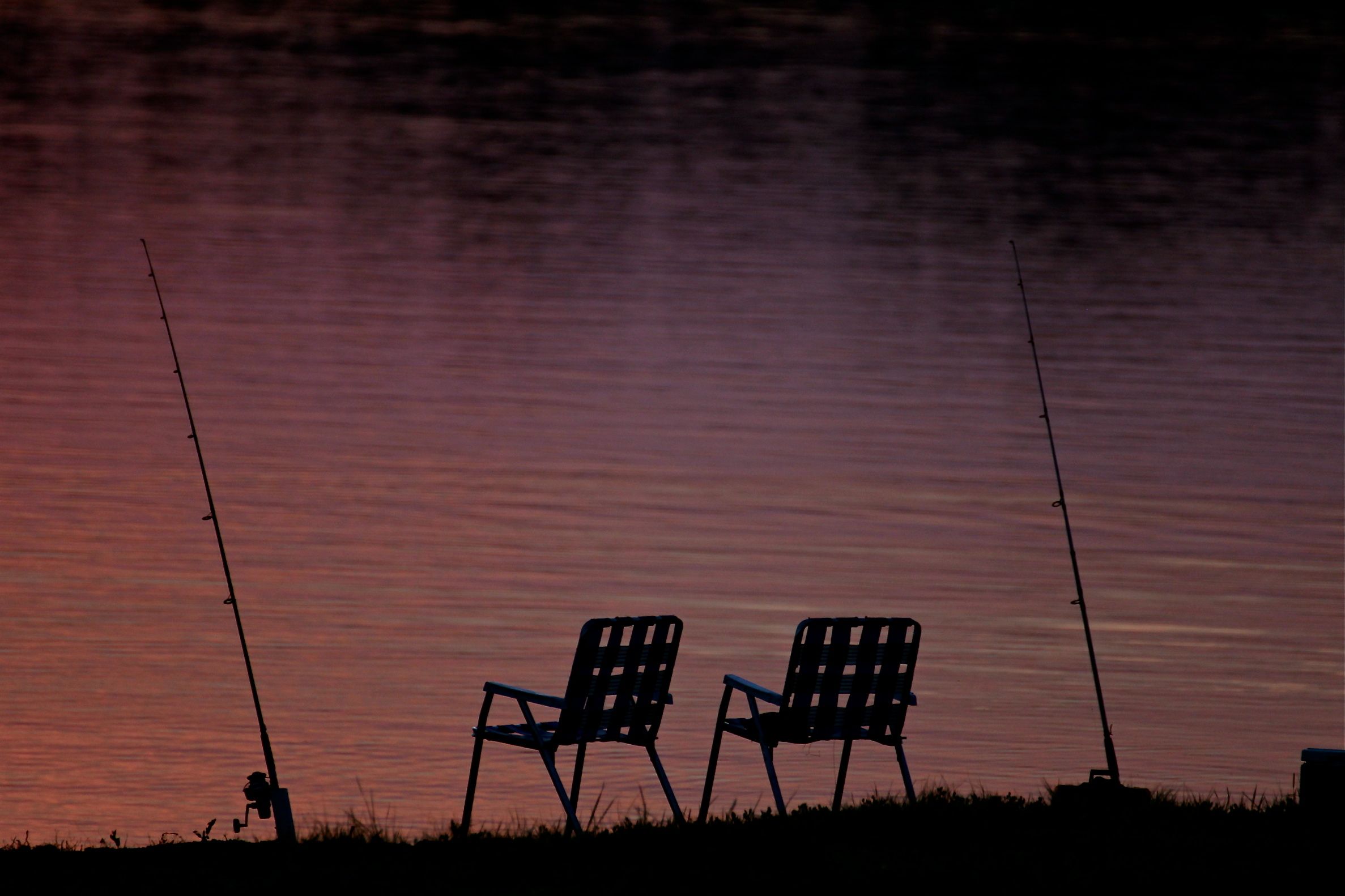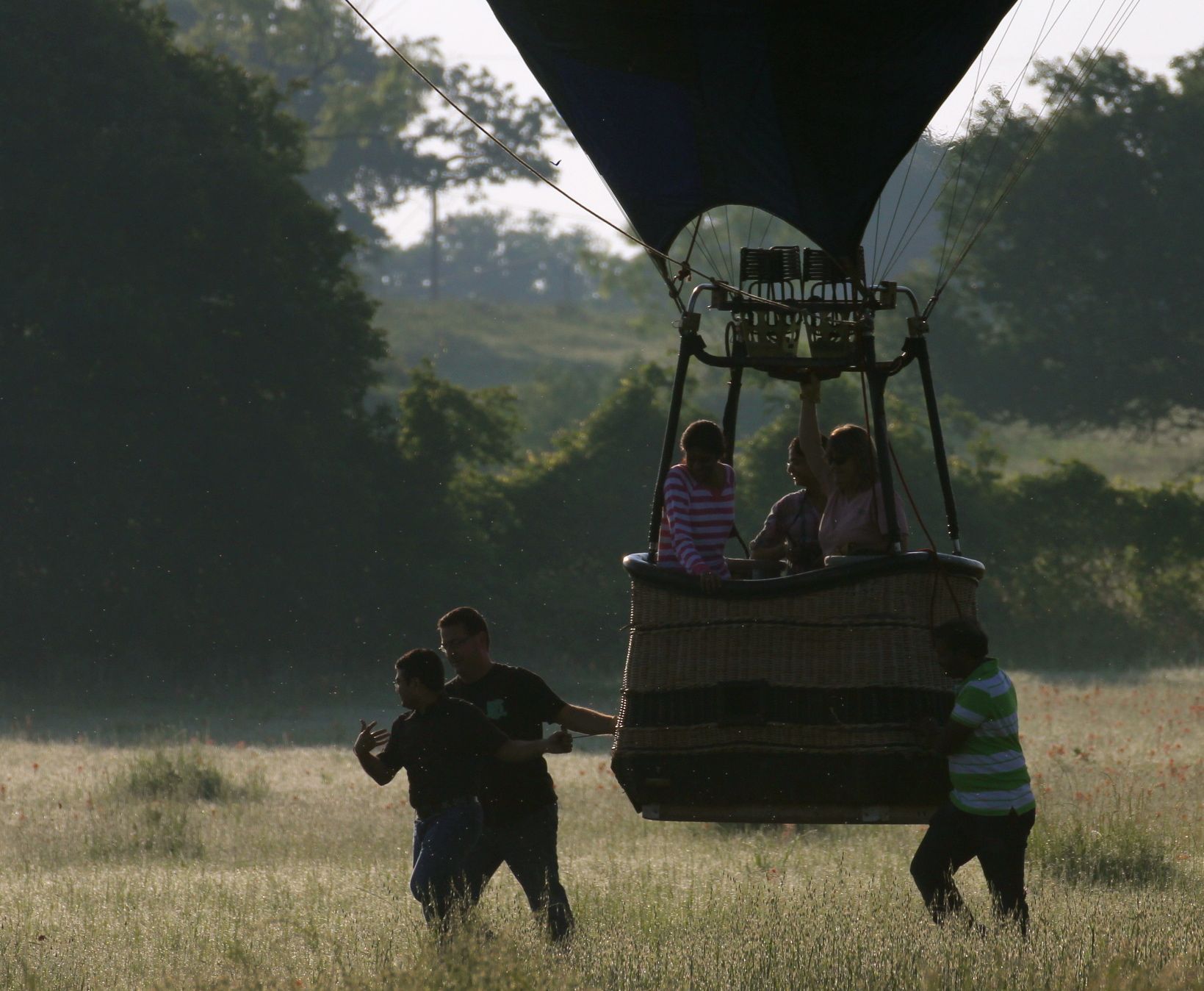 One by sea, two by land...wait, that's supposed to be the other way around isn't it?Hey you guys...you guys...you got a bite! Guys? Yo...Guys? Hello?Rise and shine...through the clouds and fogIt's been a long time since a ewww-ahhhh sunrise happened around these parts. This morning's was the closest we've had in a while.The sunrise lost its ewww-ahhh after about 3 1/2 minutes....but it was those first 3 1/2 minutes that were pretty cool!Lo and behold, out of nowhere...these guys showed up and sat down and then walked away with a basket in hand. It was the same balloon and crew that landed two doors down (in the street) from my house a few months ago.