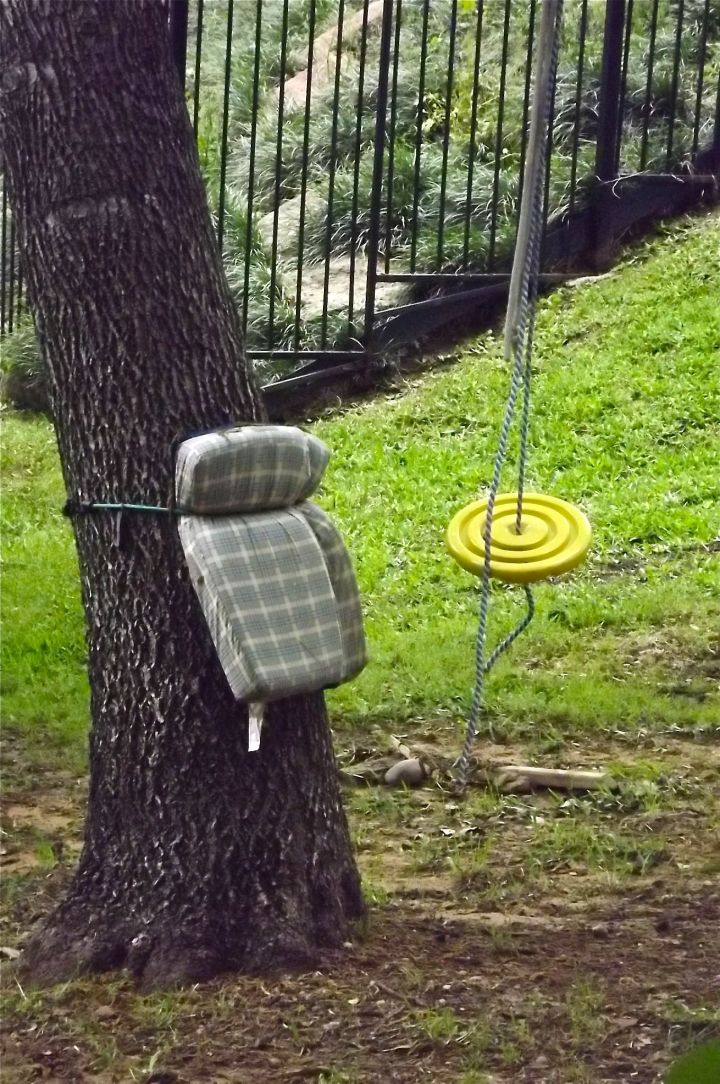 These two soon realized that this pool had a "no lifeguard on duty" policy...so there they sat pitifully longing for a nice cool dip in the poolI called this kid's backyard recreation somewhat "ingenious". The property manager I was with during our morning property walk called it "redneck"....A favorite tree...the hickory has a great trunk and bark pattern