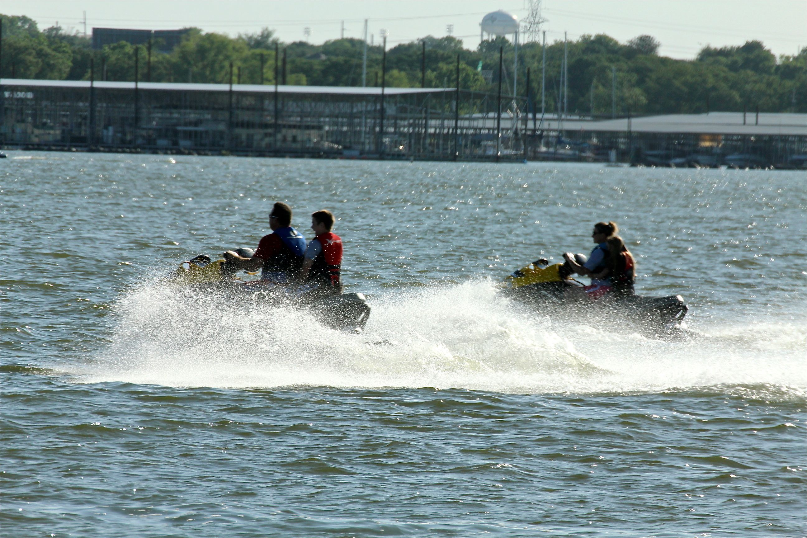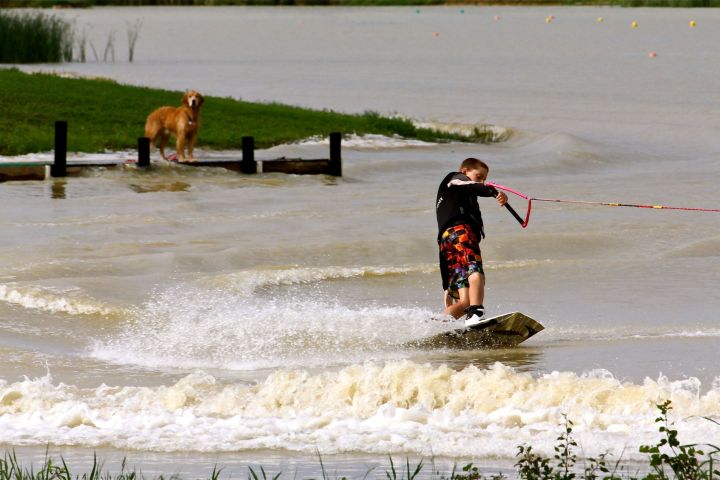 Nothing like having a fun, friendly family soccer game during the Sunday afternoon picnic outing...except for the one guy who looks a bit chapped about something...or maybe he's just cutting through....and the little girl could care less about some silly old game of kicking a ball around...she's got some orange shoes that deserve her undivided attention right now...that, and a cool refreshing soda.a family jet ski outing...The size of your boat really doesn't matter, nor the way it moves across the water......Just as long as the dang thing floats!Wonder what the investment in this guy's fishing pole is.......this guy has his investments under control...all you need is one pole with a bobber (and a pair of chest waders comes in handy at times)...but these guys, holy cow...another one of those "family that fishes together" sort of gatherings - I have a gut feeling their pole-investment is not the priority here...Now this, I'm all for: get cha a small Zebco pole from the local discounter and give it a heave-ho sidearm cast...and I bet this kiddo is full of questionsShow off...Seriously?OK, you're good...enough of you and your fancy water skiing..'Hey Buddy! It's only April. It's supposed to still be a bit chilly out here on the lake. Grab a towel"And so the kid has to show me a trick or two as well...Does it get any better than a kid's dog anxiously waiting and proudly watching from the dock? I think not. This is good stuff...