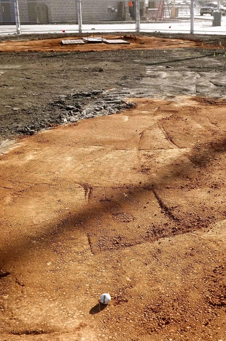 The field-inspection-before-sodding happened today...we're building it and they are already waiting.Wait, what? Is that a golf ball on what will soon be a pitching mound? We'll have none of that play here....So I've got to hand it to the contractor that owns this front-end loader. He has certainly gotten his money's worth out of this set of tires (and even the butterfly likes the tractor tires)