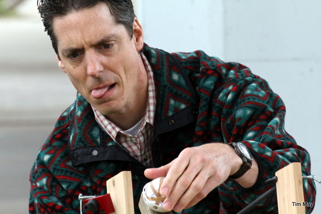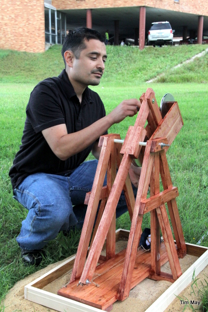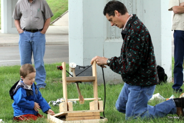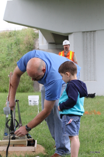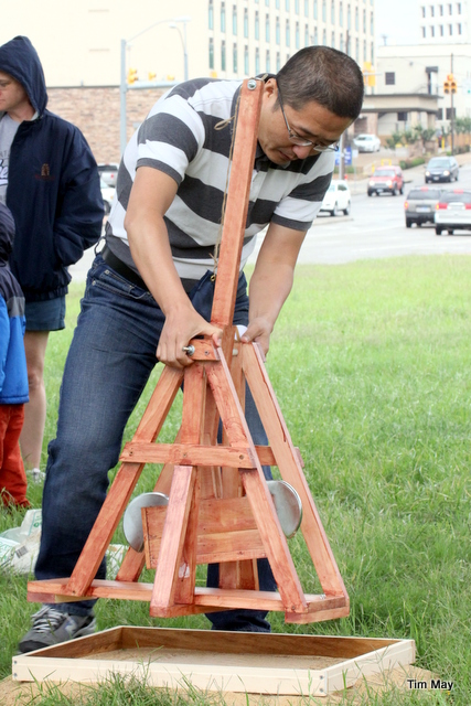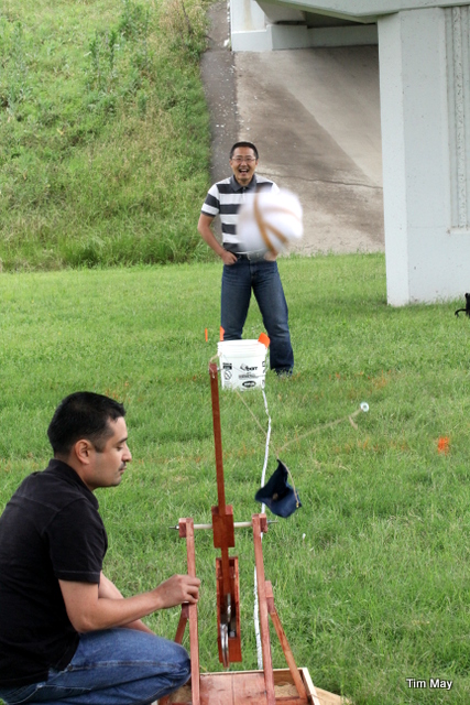 Many came out to watch the company "catapult" competition at noon. Four teams competed - they had restrictions to follow in building a catapult. The goal was to launch five projectilse approximately 30 feet to a target for points, all within a time limit. It was fun!A father and son team...with a bicycle wheel catapultLine up the shot......pull the triggerWe had the Sergio-Jericho team...with a wood slingshot catapult (complete with a stained finish) that shot the ammo backwards as much as it did forward...look out camera guy (me)The fine tuning didn't help much...Setting up for the shot...These guys ended up winning the competition...but not before making precise measurements of the counterbalance weights for their catapult.3...2...1...FIRE! A weight-drop catapult designThe other father and son team took a few seconds to play in the sandbox (where they had to set their catapult)This was the "flinging half-wiffle ball" catapult.......with a pull chainCompetition was fierce, concentration was intense...fun was had!Winners were woo-ed, champions were crowned, bonds were bound, and noses were picked ("come on Dad, hurry it up why don't cha") ... LOL!