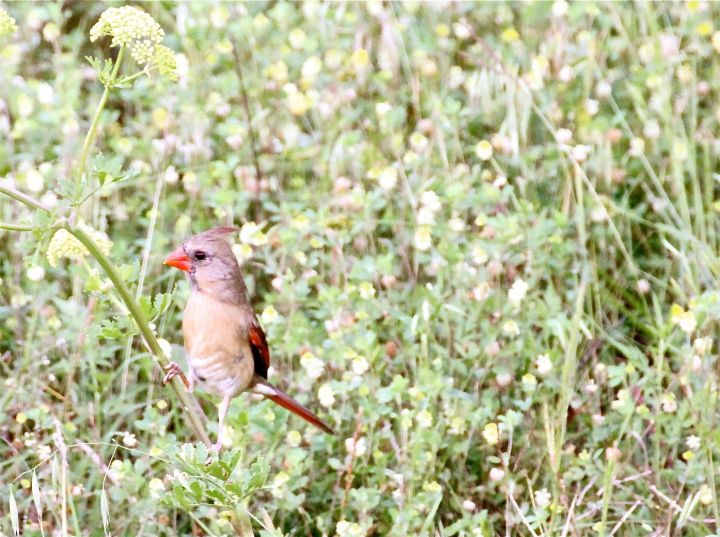 A female Cardinal precariously perched on a flimsy wildflower stem yet singing her heart out to me this morning....You've seen this plant on this blog before: Hot Lips Salvia waiting for bees and butterflies and standing tall for me this morning....I'm not sure whether it's the simplicity of the photo, the color contrast, or the story that surely goes along with this abandoned chair that caught my attention this morning....OK, so maybe there is ever a slight hint of red somewhere in the sunrise this morning... (squint and you might see it)