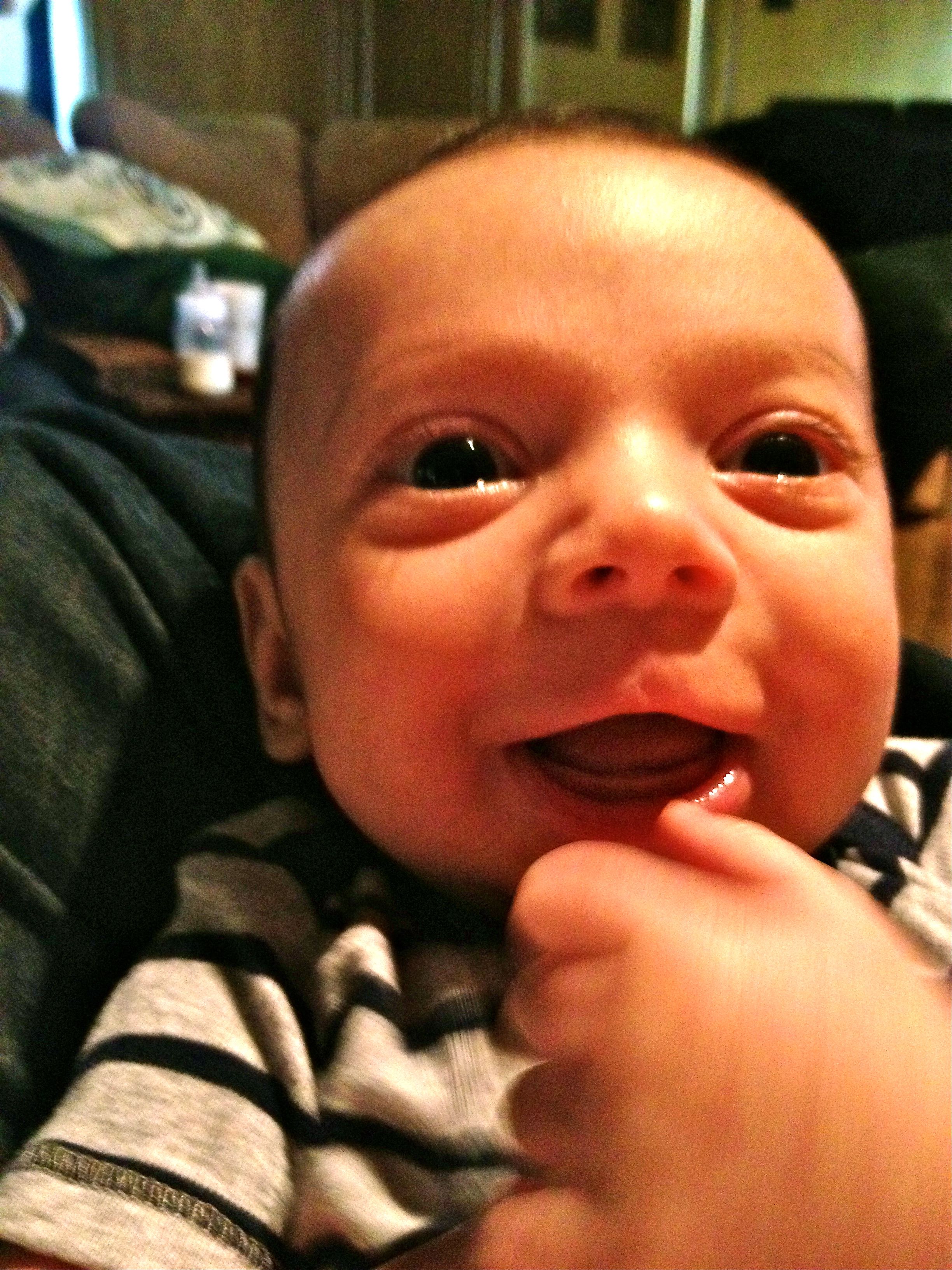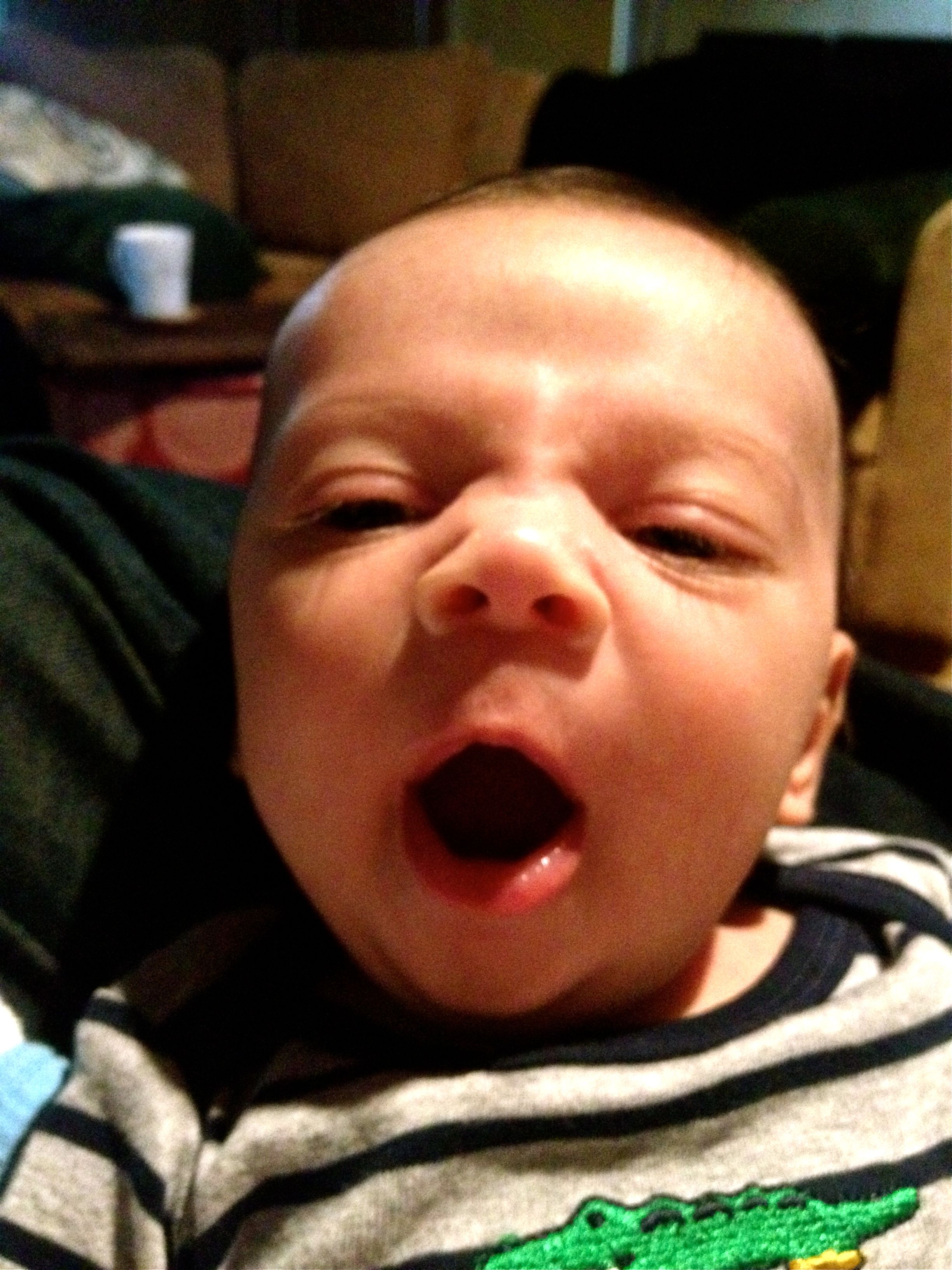 What a great way to start your morning….I got to pal around with FGS Lincoln and FS today while FDIL did here thing in Dallas for her friends wedding…we certainly got worn out at times. Funny how quickly one forgets just how much a 2 month old requires of you….But who cares when you get a reaction like this…