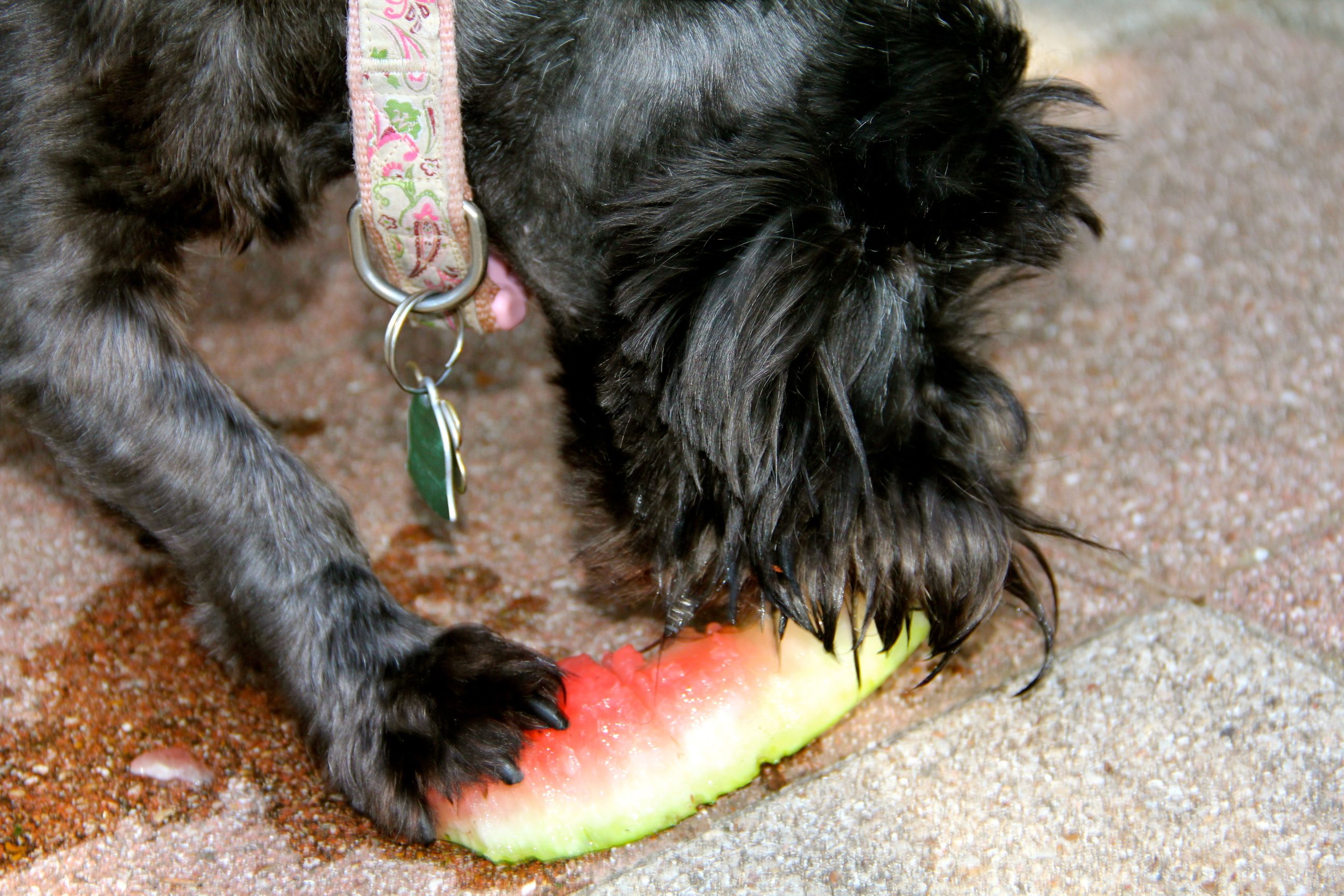 The Royals – Princess Zoey here – were lounging about the living room today, staying in the AC instead of the 93º temperatures….Mackie Queen of Scots will always give me that annoyed look when the camera is out (no matter if its the big Canon or the little FugiFilm…she indulges me only for a few shots, so I gotta be quick with her)But there is one way to get at least the Queen out-of-doors…feed her watermelon! She absolutely loves this summertime treat. She recognizes the melon when you bring it in the door and will start bumping your leg. When its being cut, she either sits up and begs or will scratch the beegeebers out of your leg….The Princess on the other hand, is a bit less enthusiastic about the treat (although there is no way the Queen will get any of her portion of her melon whether she eats it or not). Regardless, it got their lazy butts off the couch and to the backyard