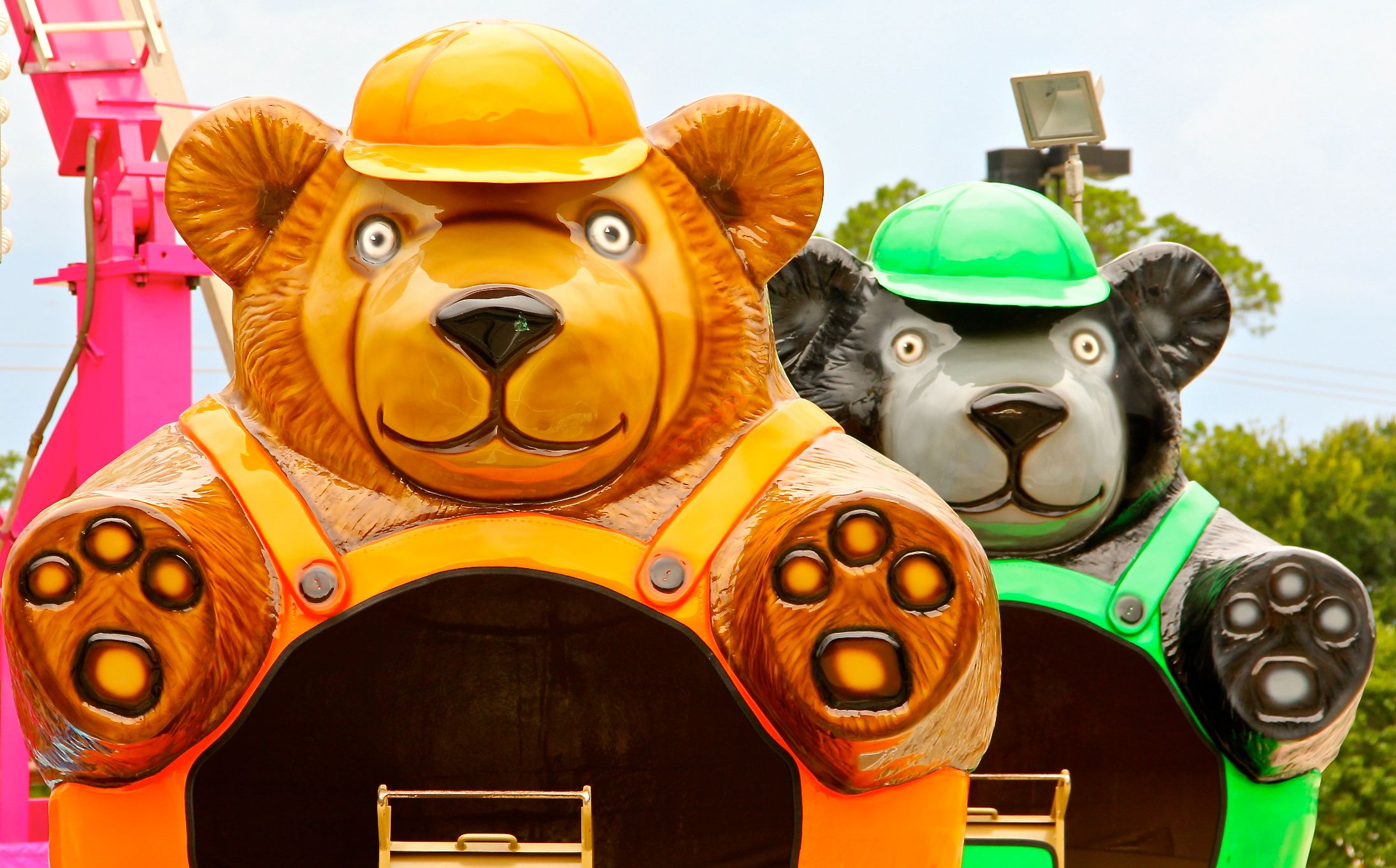 Found fun being set up in a neighboring town…they’re not yet open for business, but had most of the rides plugged in. What would a Midway be without a Ferris Wheel?Does this “bear affair” ride freak anyone else out besides me? I’m going to have nightmares about a bully bear and his buddy out to get me….