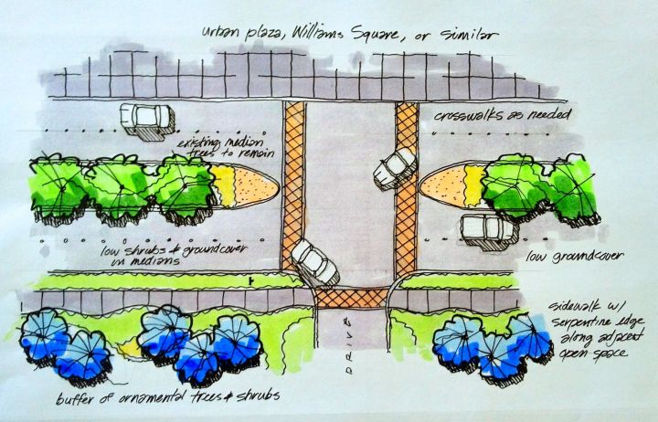 hmph. I think you’re way too critical of yourself. The sketches convey the information that needs to be shared, are concise enough that the average layperson/Realtor/teacher/businessman (i.e. committee members) can understand what the heck is going on, and they have funky little cars!! They’re beautiful!