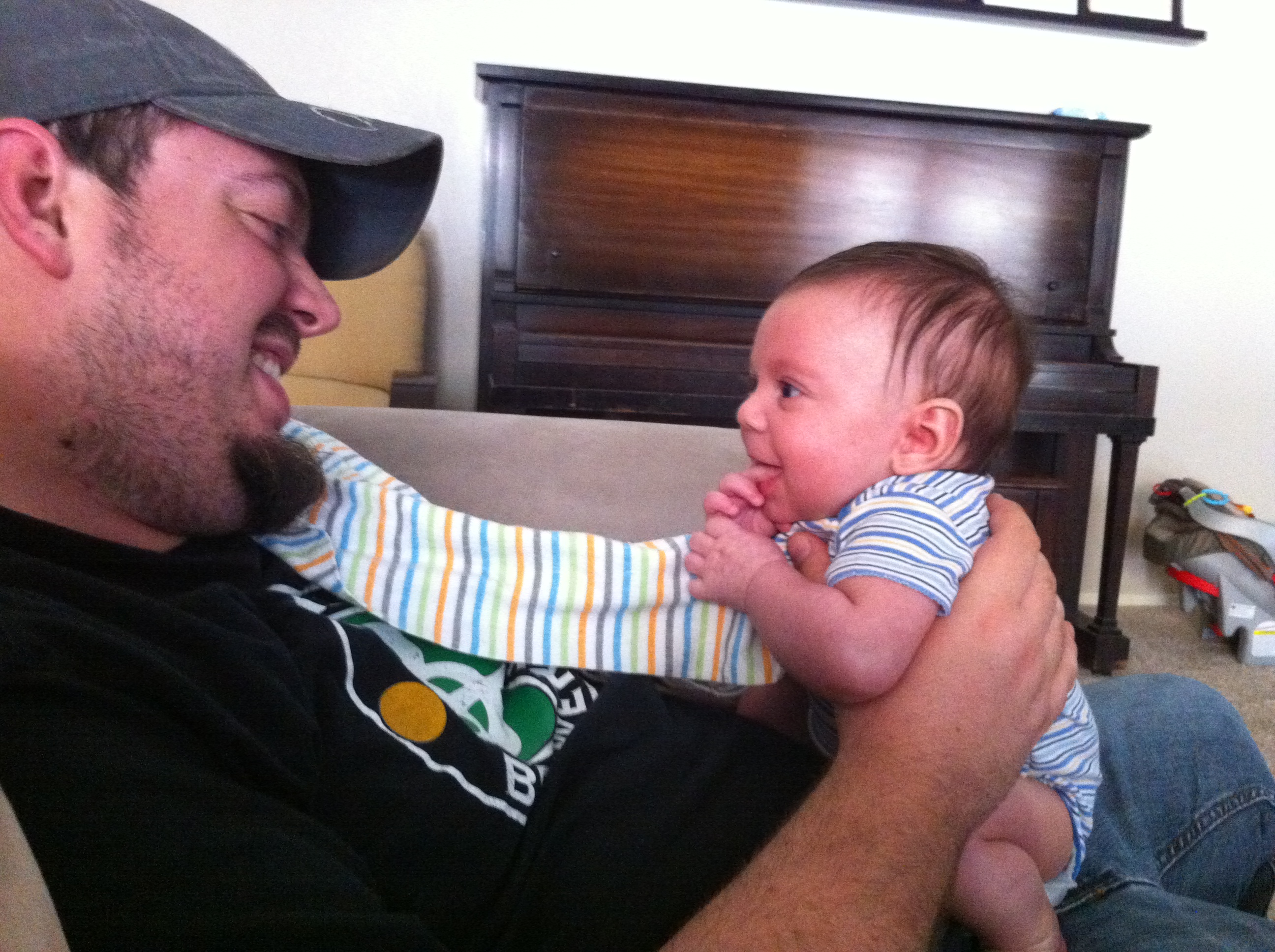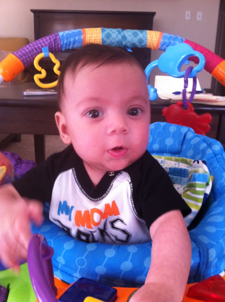 So he got this new jumper a couple weeks ago. It obviously has all sorts of colorful “things” dangling, hanging, and twirling. So when this picture came yesterday my reply was it he looks like he’s wearing some kind of playful, colorful matador hat. I got no reply from the group…hmmm. Ole’ kiddo – come see your grandpa soon – leave the bull behind! Love you…gramps