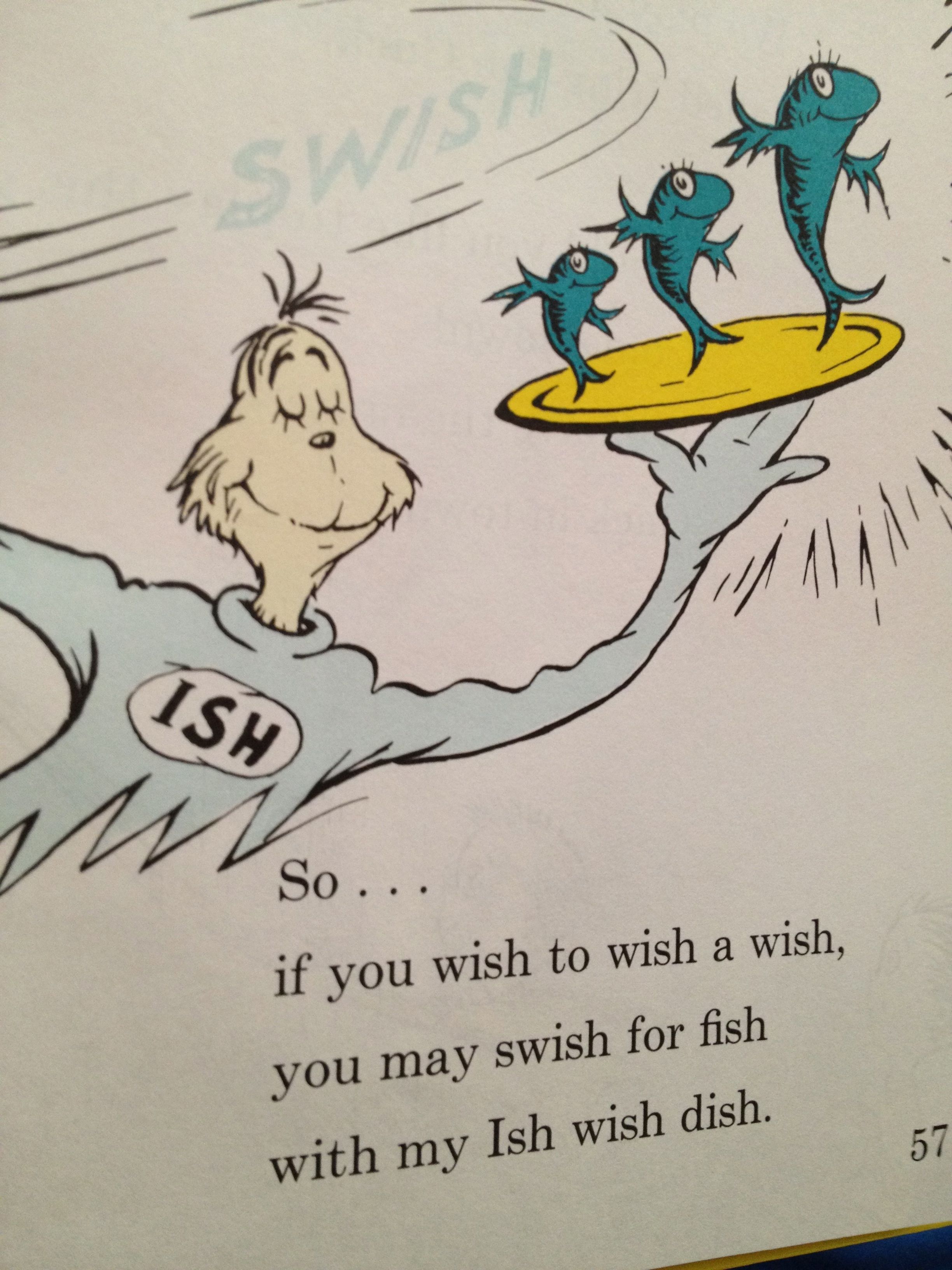 I don’t remember the last time I read Dr. Seuss…maybe 30 years ago…to Lincoln’s dad. Don’t we all need an “Ish wish dish”….
