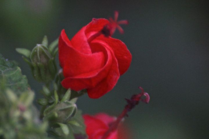 Yo turkeys! You guys just out stretching and flapping around, being up to no good?And yes I asked aloud: “why did the Turkey cross the road?”This is what happens when you get a bit of rain…blooms from my front yard. Boy oh boy do I have a time with trying to photograph red blossoms – guess I need to Goggle a how-to one day soonBTW, this is “Turk’s Cap”. A wonderful, native perennial that you can literally neglect all you want, and it will surprise you with its resilence. Oh yeah….the hummingbirds love it too.