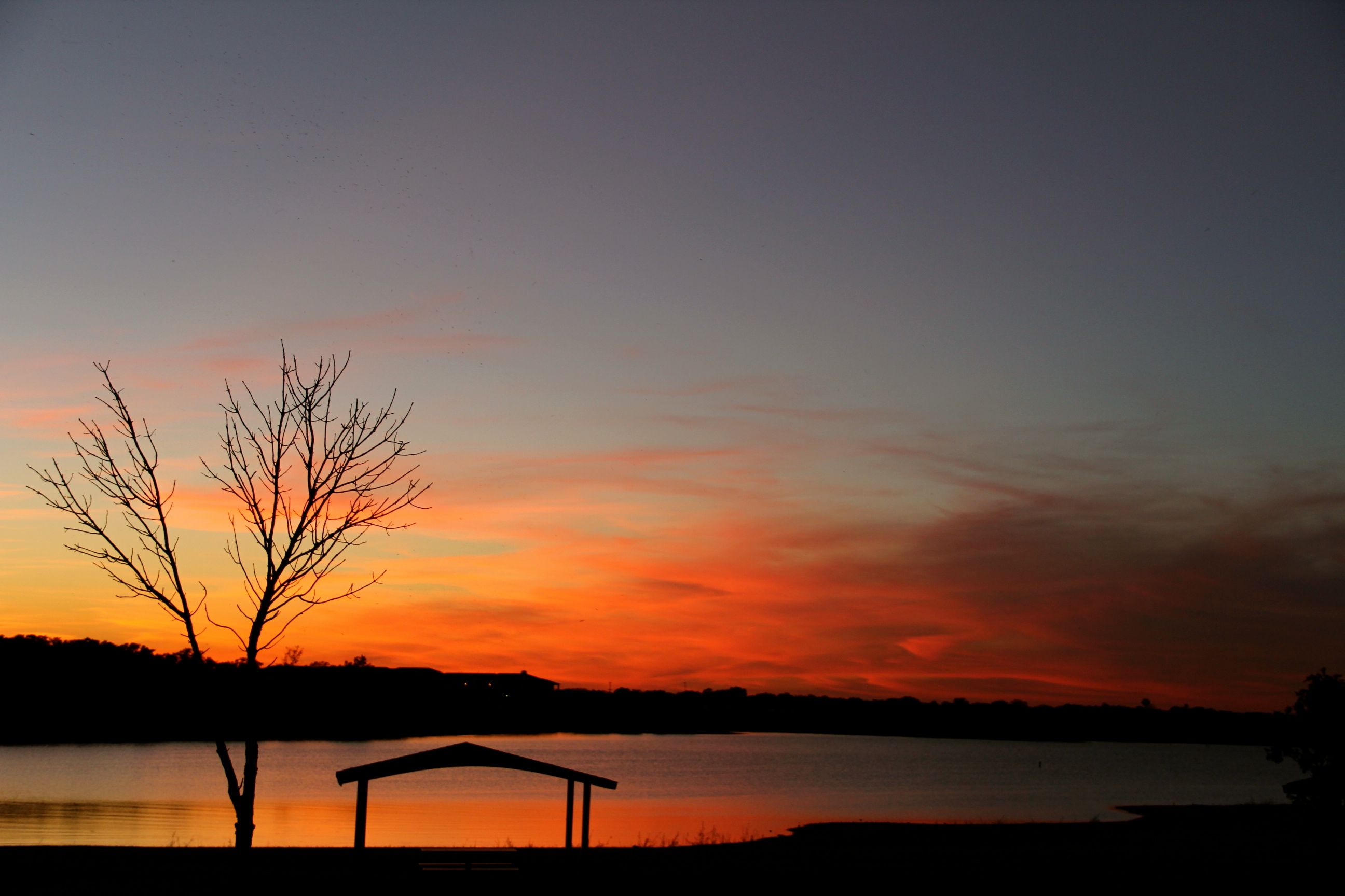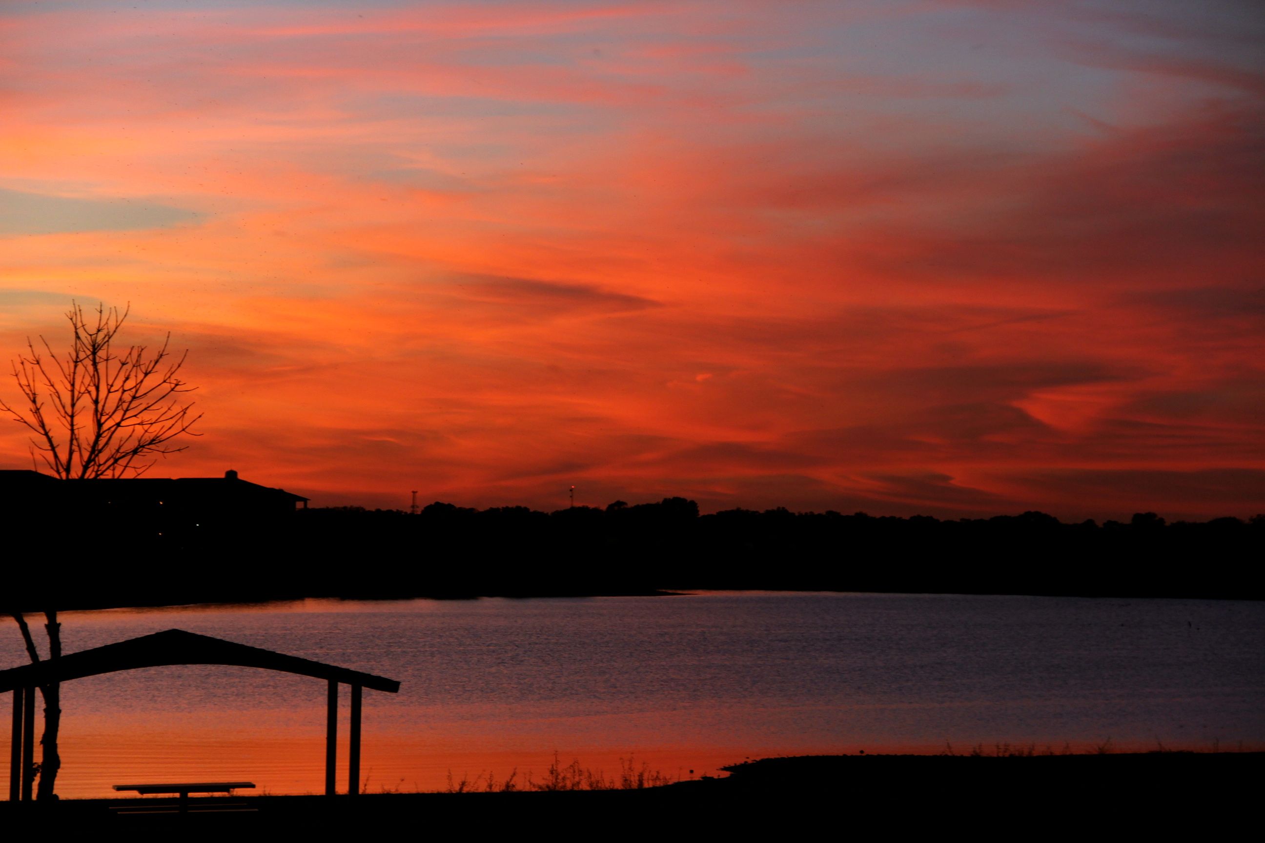 A beautiful sunset, from the same vantage point where the ducks were frolicking this morning…(I love the “folds” in the clouds)