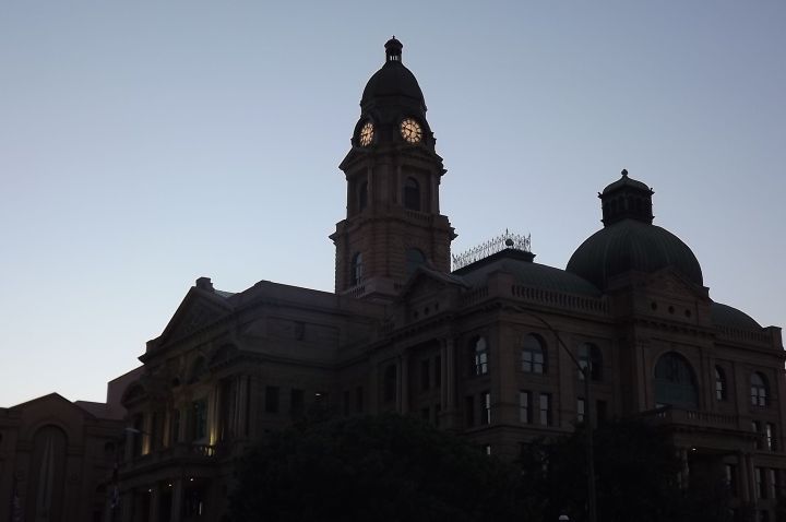 The Tarrant County Courthouse at duskA Tuesday night middle school game along my commute home route (the team in red was leading 24-0 in the 3rd quarter). BTW, it is well known that football is king in Texas but I checked…those are not luxury suite windows in the end zone.