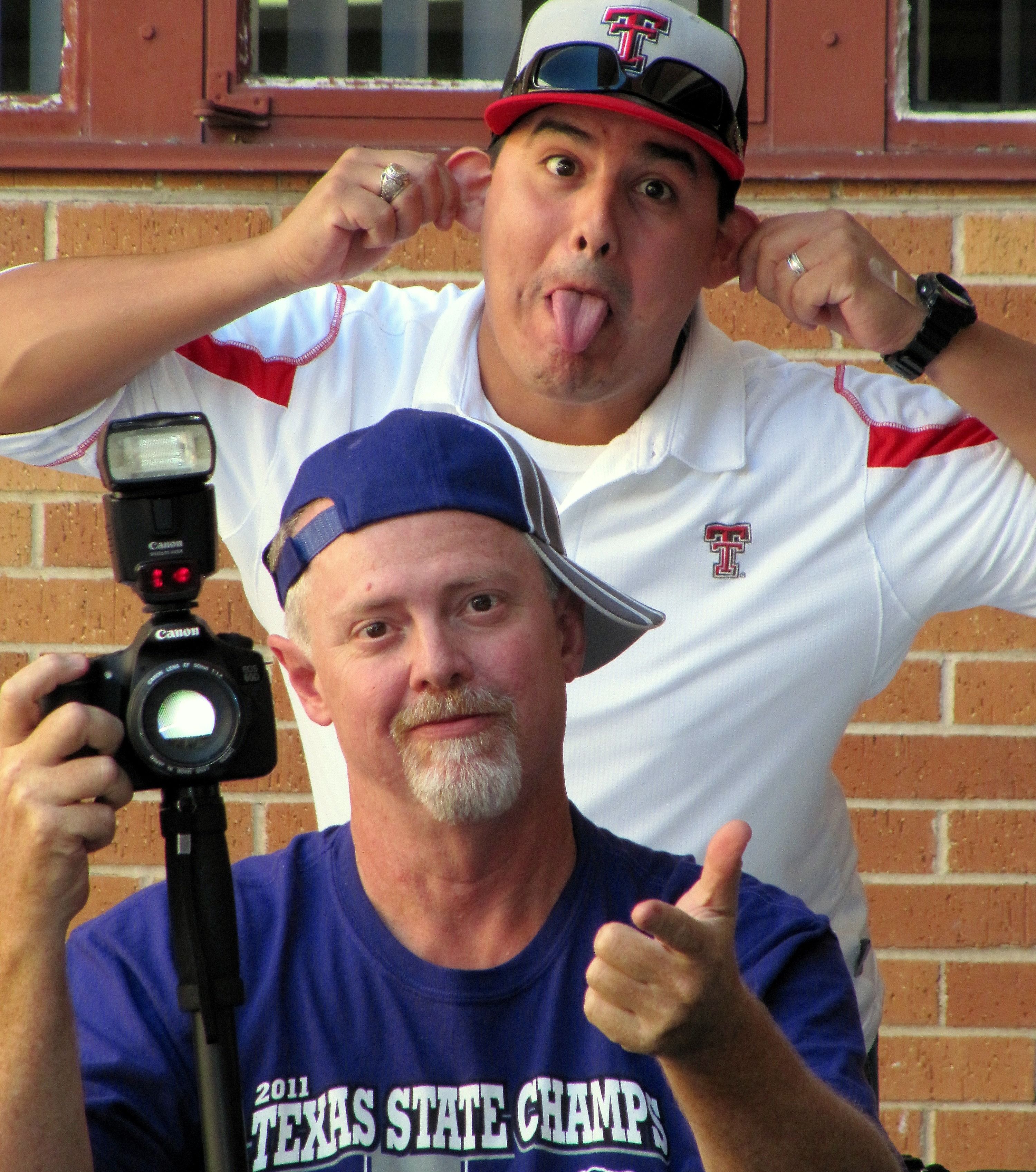 Each year at work we hold a tailgate party – clients are invited to a lunch BBQ and everyone is encouraged to show their favorite college spirit. This year…not so many hats were wornEven the deserting school of the Big 12 was represented…You can probably imagine some of the “smack” conversations going around with so much Texas school apparel being worn.Family and kids are always invited – one of my co-worker’s daughterPoor girl…Dad’s “picking” on herSome of the camera people were happy the entire time….Hey wait a minute…who’s that…and in particular, who’s guy behind the guy with the camera?