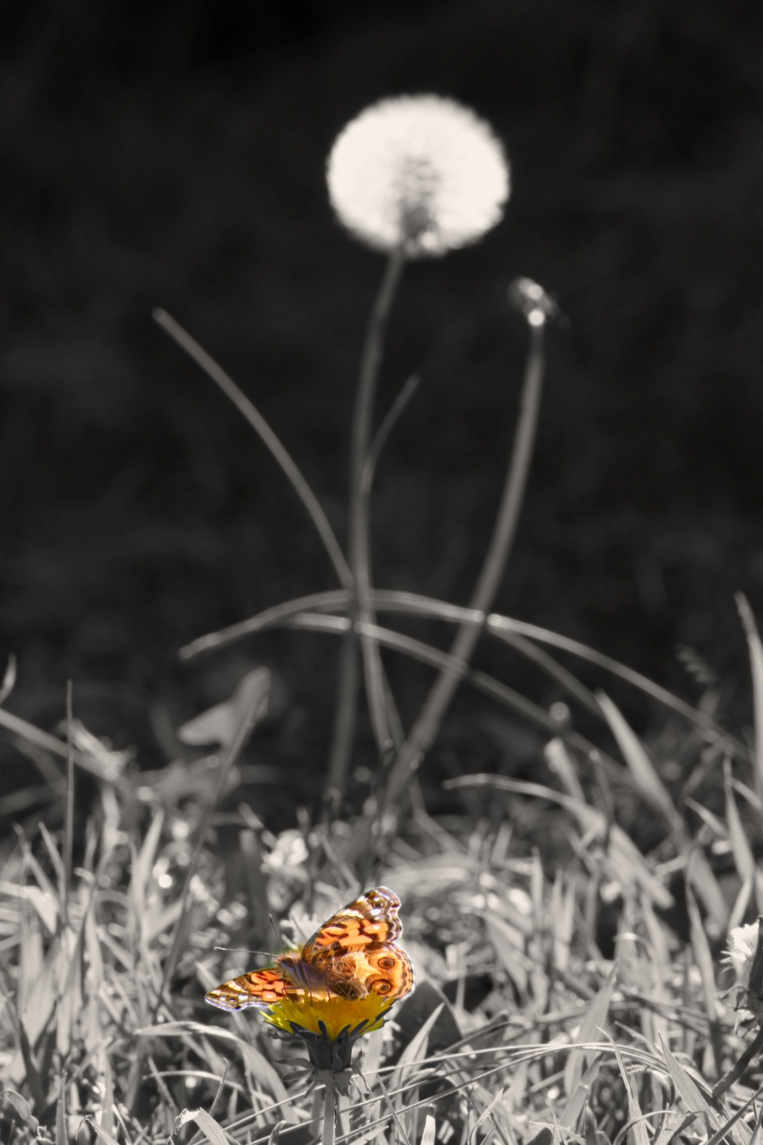 Nine days before Christmas and its 75° – Frosty has lost his hat, turned his back to the street, broke his arm, and longs for snow on a Christmas tree that is outside the house….Wait a minute…aren’t these guys supposed to be in Mexico or someplace further south about this time of year? Don’t hold me to it but I think these butterflies are juvenille “Painted Lady”.Yup, that’s a lady bug on my dag-burned backyard dandelion….Maybe they only stopped by for a drink, and they will soon be on their way….I’m thinking Zoey should have snow balls hanging from her beard this time of year instead of pine needles….This is but one of the five or six juvenile “flutterbys” I camera-chased in my backyard this afternoon….Just experimenting with an iPad app….