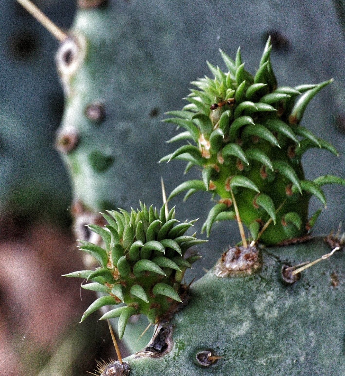 The neighbor-down-the-street’s Prickly Pear is showing a spring awakening
