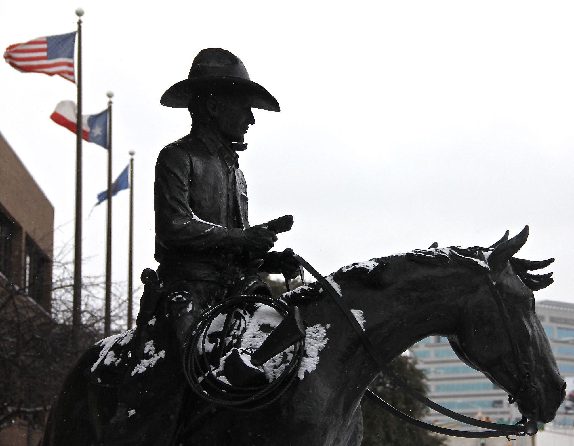 365 for 2014, Entertainment, Fun, Inspiration, Photos, The Daily Cap(s) 2014, Weather The Cowboy Daily Cap (37) A light snow, appropriately enough, dusts the cowboy statue in from of the Texas and Southwestern Cattle Raisers Foundation building in Fort Worth. Real Cowboys (back then) endured a whole lot harsher weather than this…. Rate this:Share this: Click to share on Facebook (Opens in new window) Facebook Click to share on X (Opens in new window) X Click to email a link to a friend (Opens in new window) Email Click to print (Opens in new window) Print Click to share on LinkedIn (Opens in new window) LinkedIn Click to share on Reddit (Opens in new window) Reddit Like Loading...