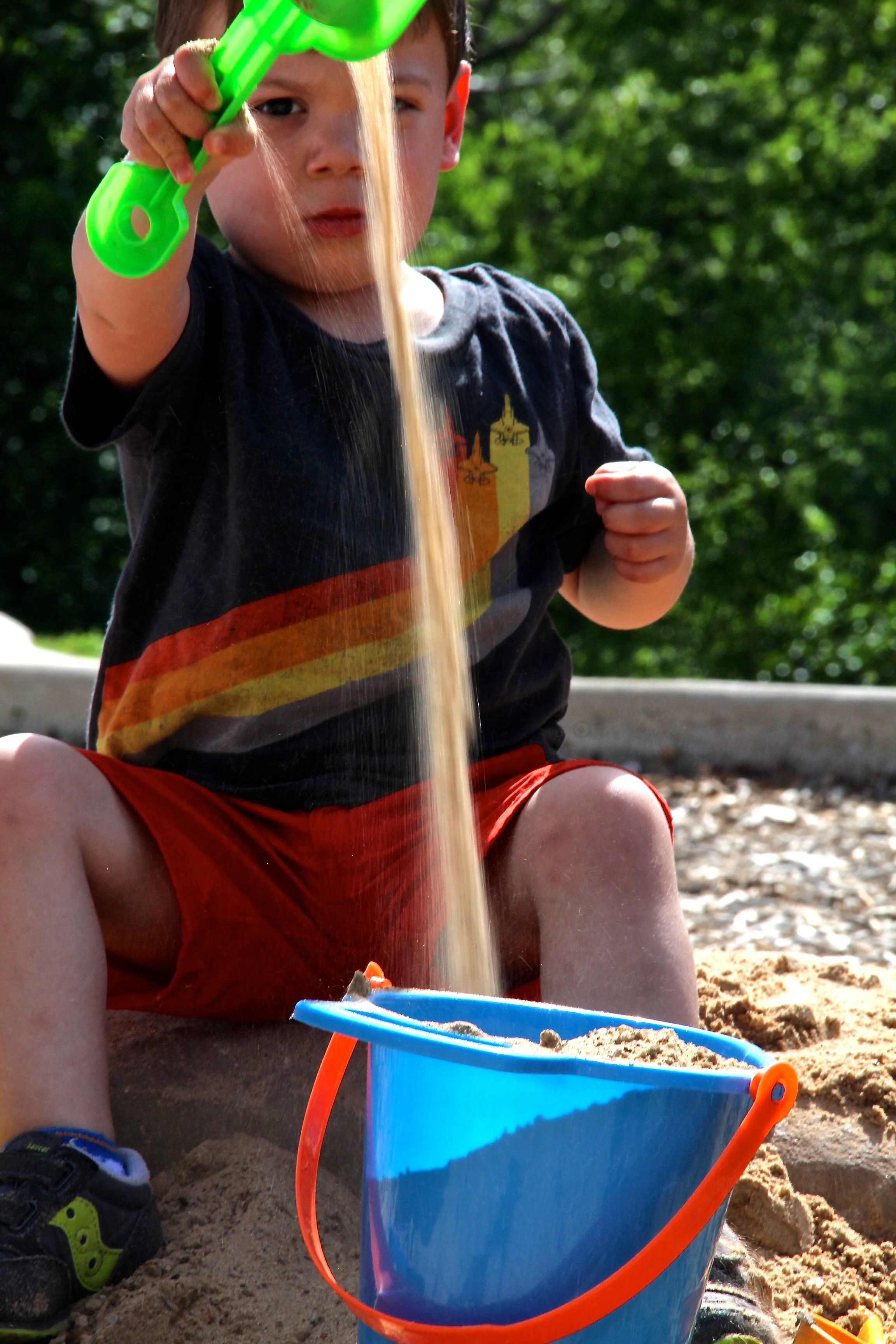 If the FGs never tires of playing with sand and being creative with his filling the bucket, then I will take pictures till my battery runs out or he tires, which comes first….