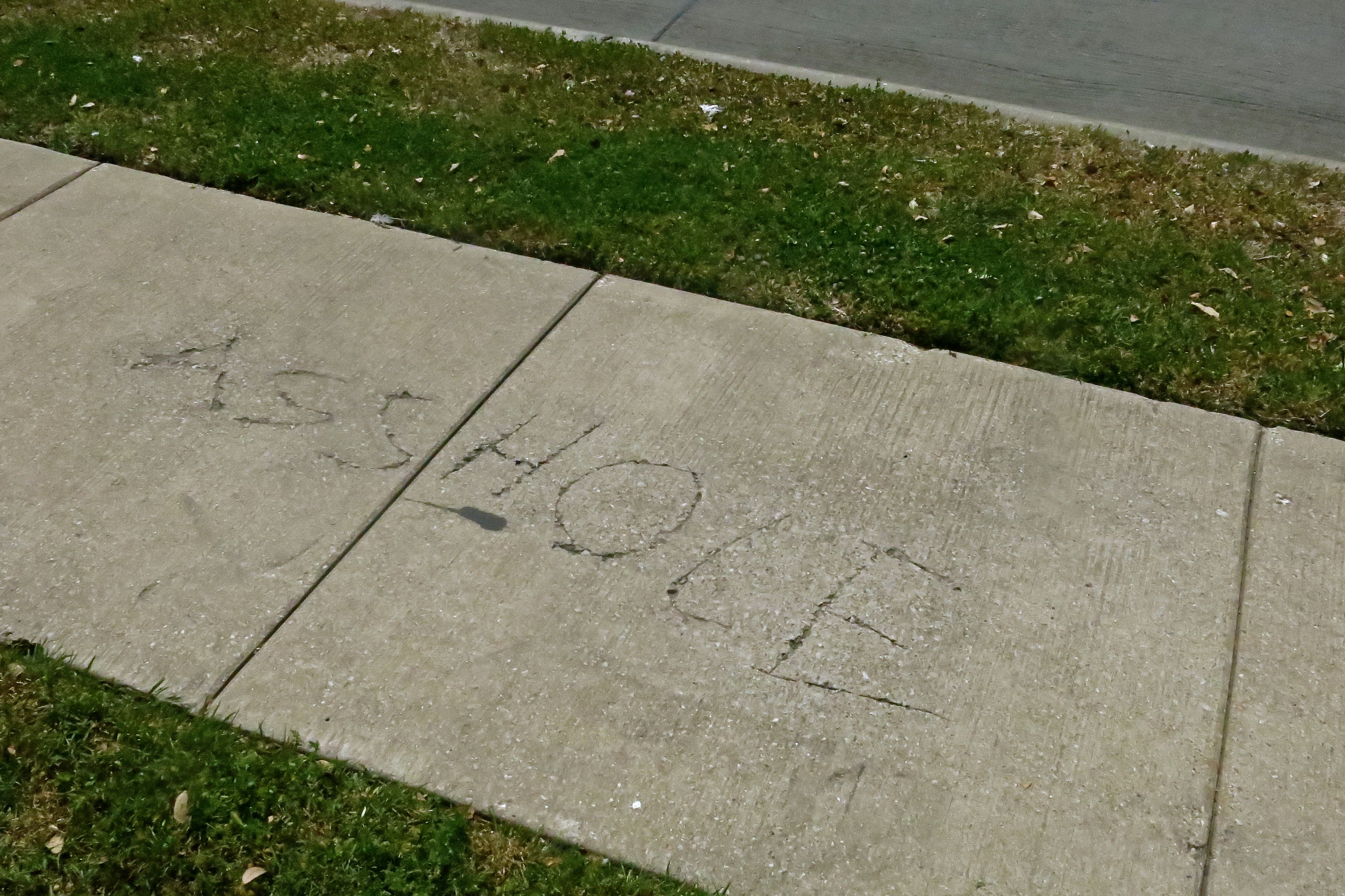 I love to walk around playground areas and see the simple, creative art from kids at play….Only to have the enjoyment of creative expression ruined by the likes of one…well…self-described #&%hole. OK, now where was the sidewalk guy that was supposed to guard against this kind of mischief while the concrete hardened?
