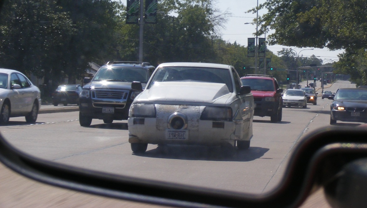 Just a passing thought: I wonder if this guy is a duck hunter? He could probably purposefully roll the “vehicle” in to the water and paddle out to retrieve his bounty. Getting back to shore could be a trick. Continue reading “Automobile (I think) aftermarket amenities”